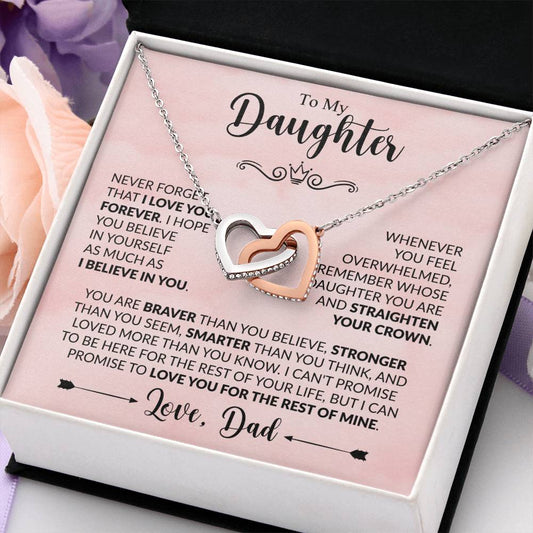 To My Daughter Necklace – Graduation & Christmas Gift from Dad – Interlocking Hearts Necklace