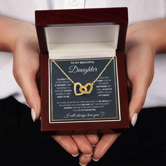 To My Daughter Necklace – Daughter Necklace for Graduation & Birthday Events – Interlocking Hearts Necklace