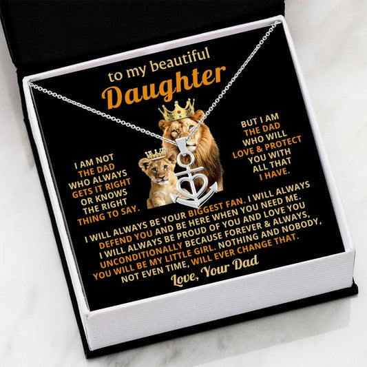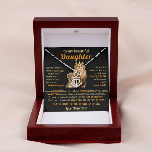 To My Daughter Necklace - Birthday Jewelry Gift from Dad - Old Lion - Anchor Pendant Necklace