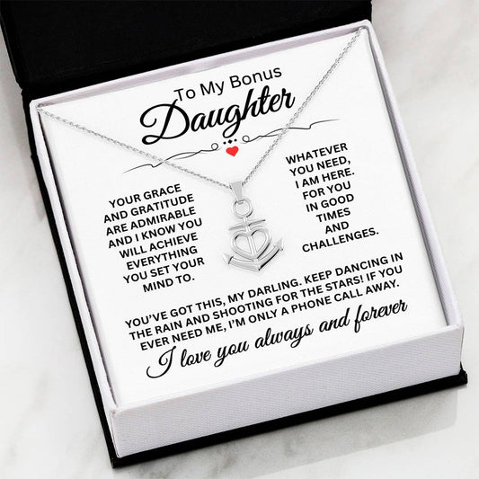 To My Bonus Daughter - Anchor Pendant Necklace for Birthday, Graduation and Christmas