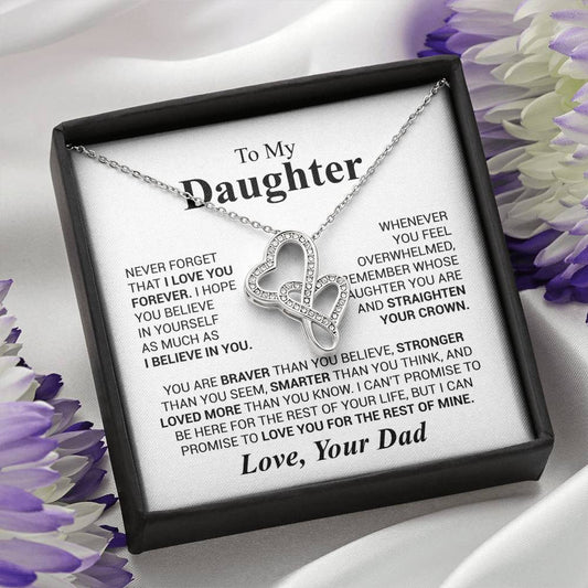 To My Daughter - You are braver than you believe - Daughter Gift from Dad - Heart-to-heart Pendant Necklace