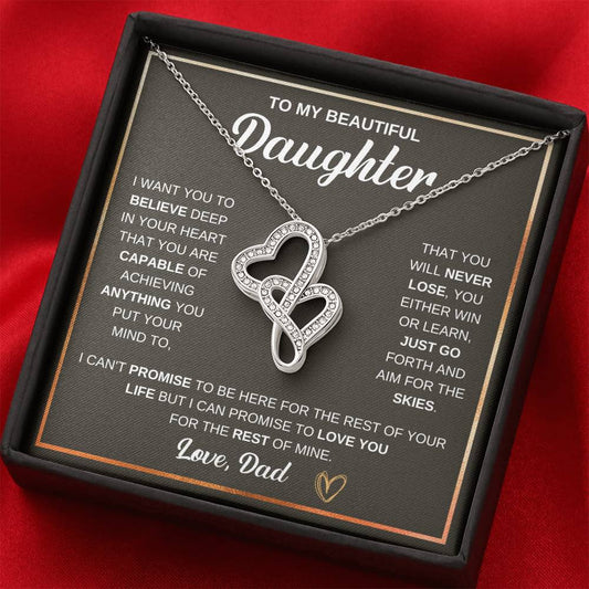 To My Daughter Necklace - Heartfelt Gift from Dad for Birthday, Graduation & Proud Dad Moments - Heart-to-heart Pendant Necklace