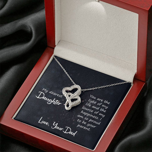 To My Daughter Necklace - Proud Dad to Daughter Jewelry for Birthday, Graduation & Special Celebrations - Heart-to-heart Pendant Necklace