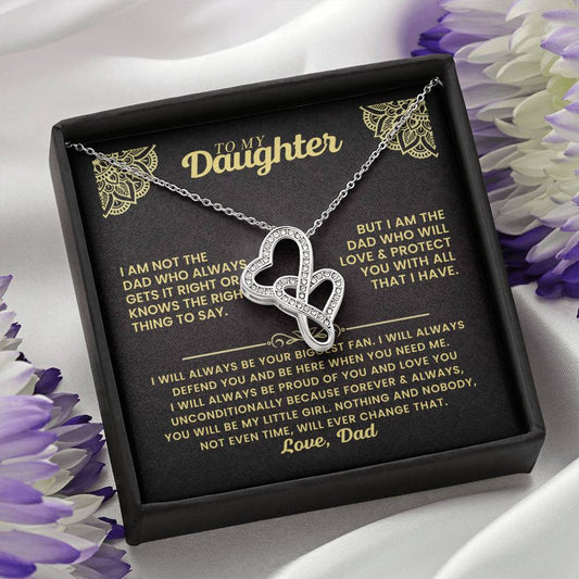 To My Daughter Necklace - I will always be your biggest fan - Gift for Daughter from Dad - Heart-to-heart Pendant Necklace
