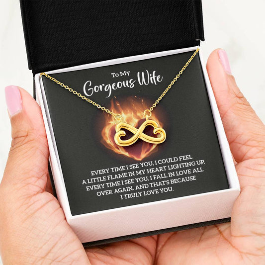 To My Gorgeous Wife Necklace - Touching Romantic Gift for Wife from Husband for Christmas, Anniversary & Valentine’s Day - Endless Love Necklace