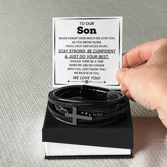 To Our Son Bracelet – Birthday, Graduation, Christmas Gift from Parents – Men’s Cross Bracelet