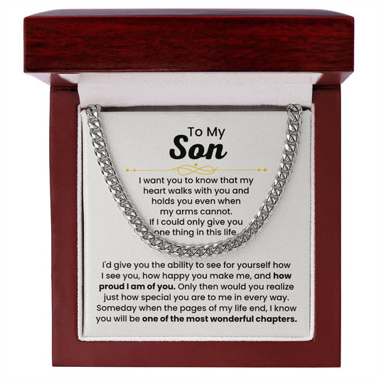 To My Son Necklace - Just hold the close to feel my love - Cuban Link Chain