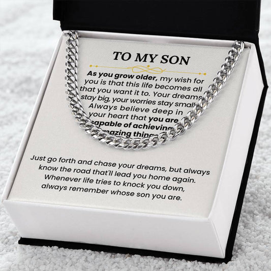 To My Son Necklace - As you grow older - Graduation, Birthday Gift Idea for Son – Cuban Link Chain