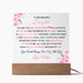 Give your daughter a gift she will never forget with this custom acrylic keepsake. Engrave it with your choice of loving words, dates, or a message that reflects the bond you share. Its sleek, modern design makes it a stunning piece of décor, while its personalized message makes it an emotional treasure.