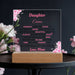 Make your daughter’s day extra special with this beautifully crafted acrylic plaque. Personalize it with a loving message, an inspirational quote, or a meaningful design that reflects her personality. The clear finish and modern design make it a timeless addition to her space, whether it’s her room, study desk, or office.