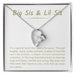 Celebrate the unbreakable bond between sisters with this Big Sis & Lil Sis Heart Necklace. Crafted with elegance, the sparkling pendant symbolizes love, laughter, and memories shared over the years. Available in a classic two-tone gift box, or upgrade to the mahogany luxury box with LED light for a breathtaking presentation. This necklace is more than jewellery—it’s a keepsake that reminds your sister she’s cherished forever.