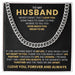 Looking for a gift that blends sophistication with heartfelt emotion? This luxury gold necklace, presented in a mahogany-style gift box with a touching message, is designed to make your husband feel truly special. Ideal for Valentine’s Day, anniversaries, Christmas, or just because—this gift symbolizes strength, love, and commitment. A thoughtful way to remind him how deeply he’s cherished every single day.