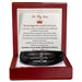 Show your son just how much he means to you with this stylish and meaningful bracelet. Made from durable leather with sleek accents, it’s more than just jewelry—it’s a daily reminder of your love, pride, and encouragement.