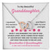 This sparkling necklace is the perfect way to remind your granddaughter of the light she brings into your life. Its design glitters beautifully, but its true magic lies in its meaning — a symbol of love, joy, and the special connection you share. Perfect for birthdays, graduations, or just because, this necklace is a thoughtful keepsake that will brighten her day every time she wears it. A timeless reminder that she is loved beyond words.