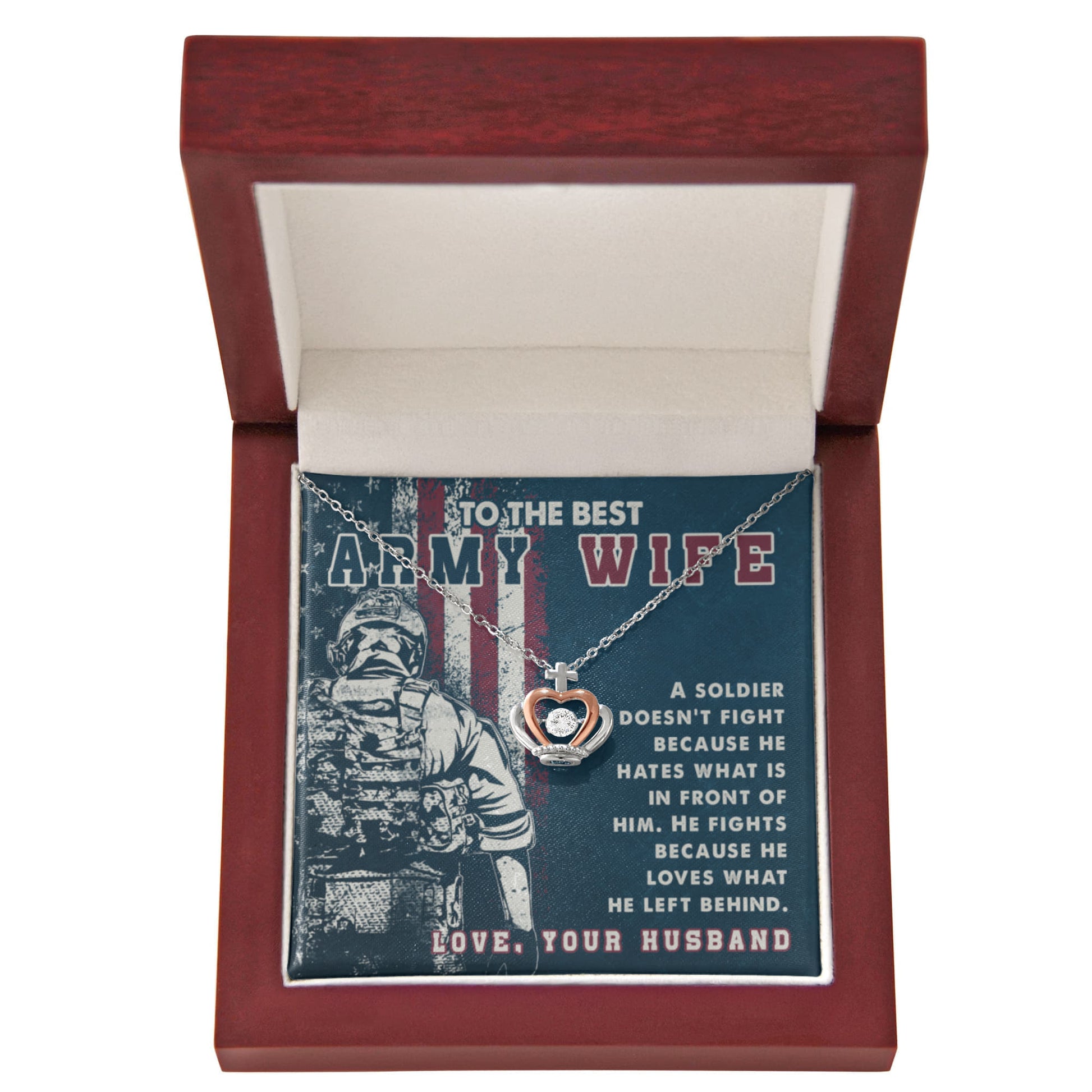 To My Army Wife Necklace - Romantic Jewelry for Wife - Crown Pendant Necklace