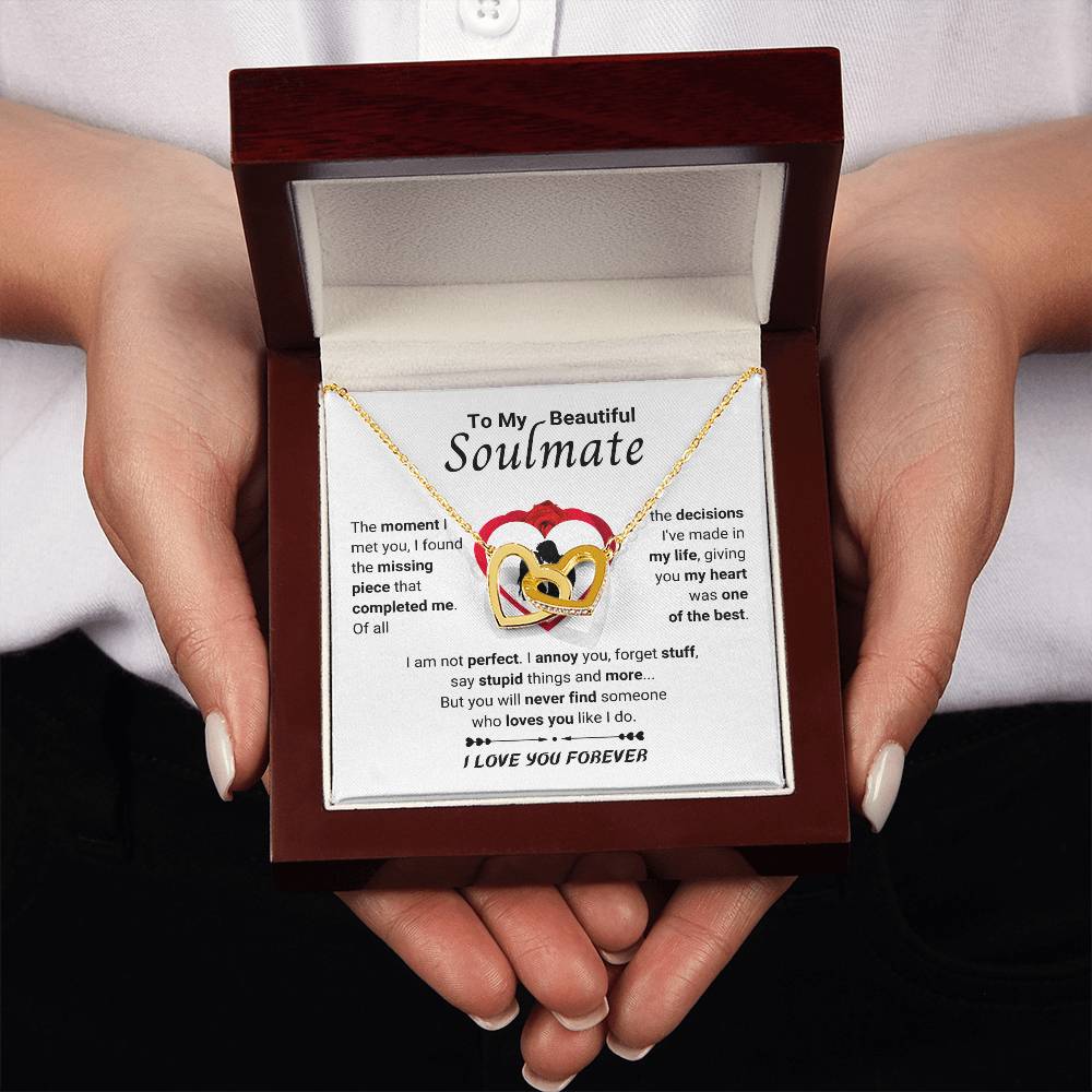 To My Beautiful Soulmate Necklace - Soulmate Gift for Her for Christmas & Everyday Love - Interlocking Hearts Necklace