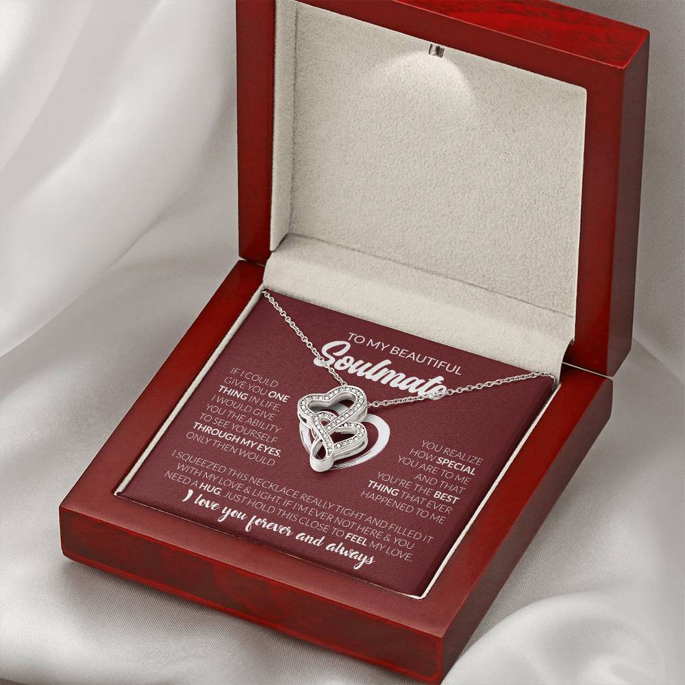 To My Beautiful Soulmate Necklace - Soulmate Jewelry Gift for Her for Birthday & Valentine’s Day - Heart-to-heart Pendant Necklace