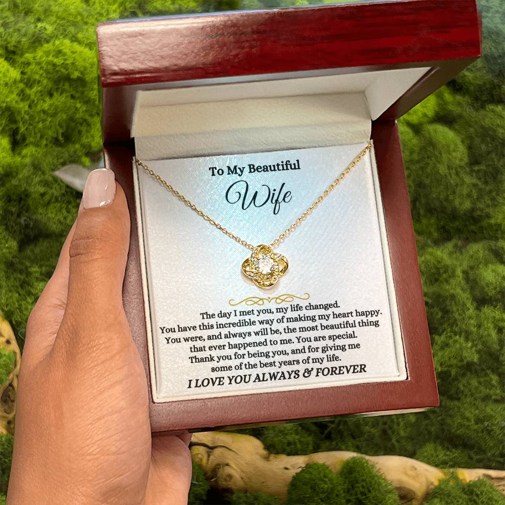To My Beautiful Wife Necklace - Beautiful Wife Jewelry Gift for Birthday, Valentine’s Day & Special Romantic Moments - Love Knot Necklace