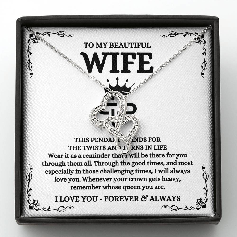 To My Beautiful Wife Necklace - Best Loving Jewelry Gift for Valentine’s Day, Anniversaries & Romantic Surprises - Heart-to-heart Pendant Necklace