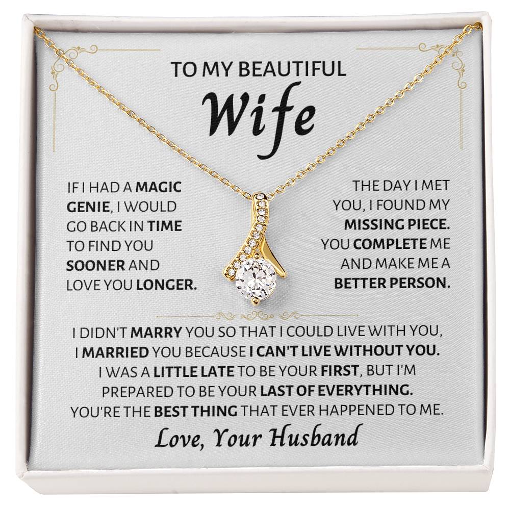 To My Beautiful Wife Necklace - Best Surprise Gift for Wife from Husband for Anniversary, Christmas & Valentine’s Day - Alluring Beauty Necklace