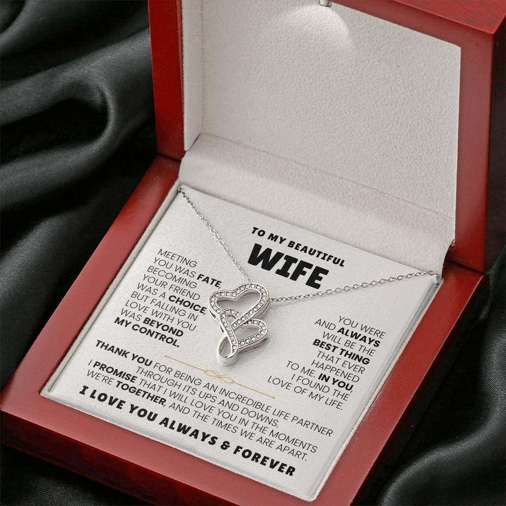 To My Beautiful Wife Necklace - Emotional Jewelry Gift for Wife from Husband to Celebrate Love Every Day - Heart-to-heart Pendant Necklace