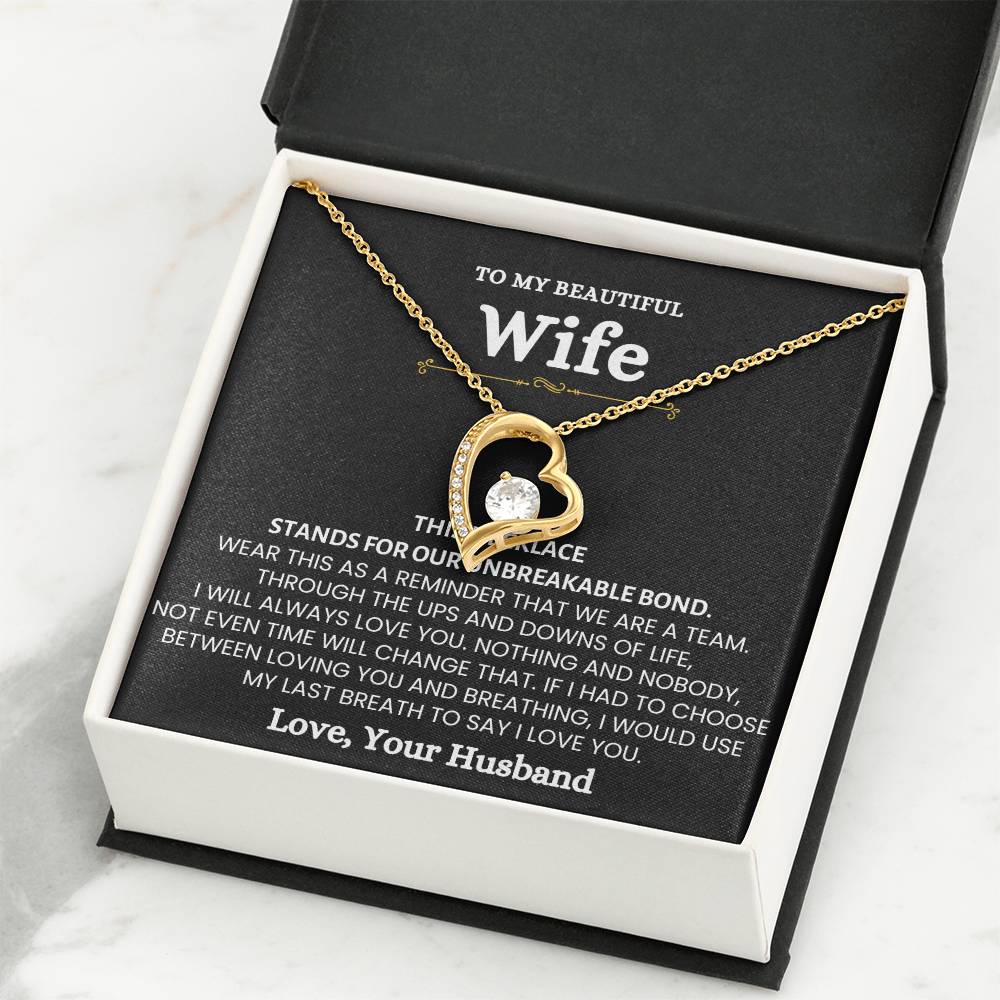 To My Beautiful Wife Necklace - Loving Husband Gift for Christmas, Valentine’s Day & Birthday Celebrations - Forever Love Necklace
