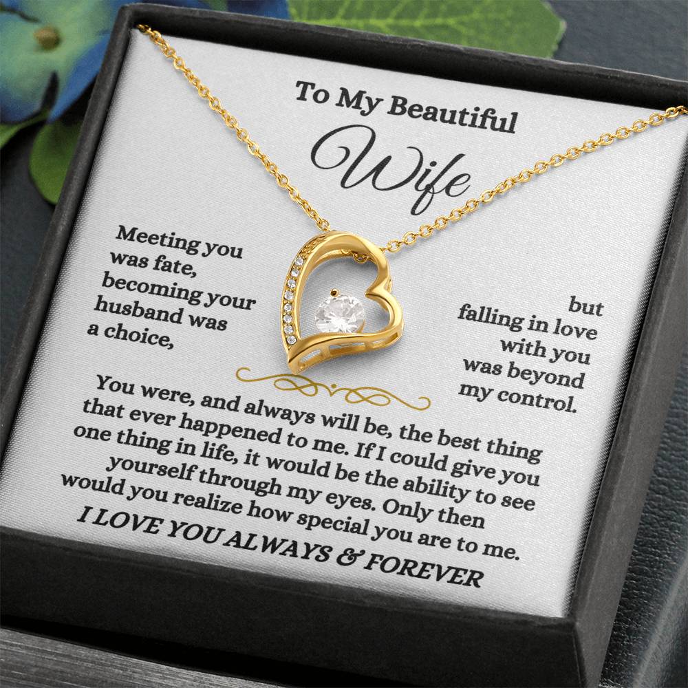 To My Beautiful Wife Necklace - Perfect Romantic Surprise from Husband for Anniversary, Birthday & Valentine’s Day - Forever Love Necklace