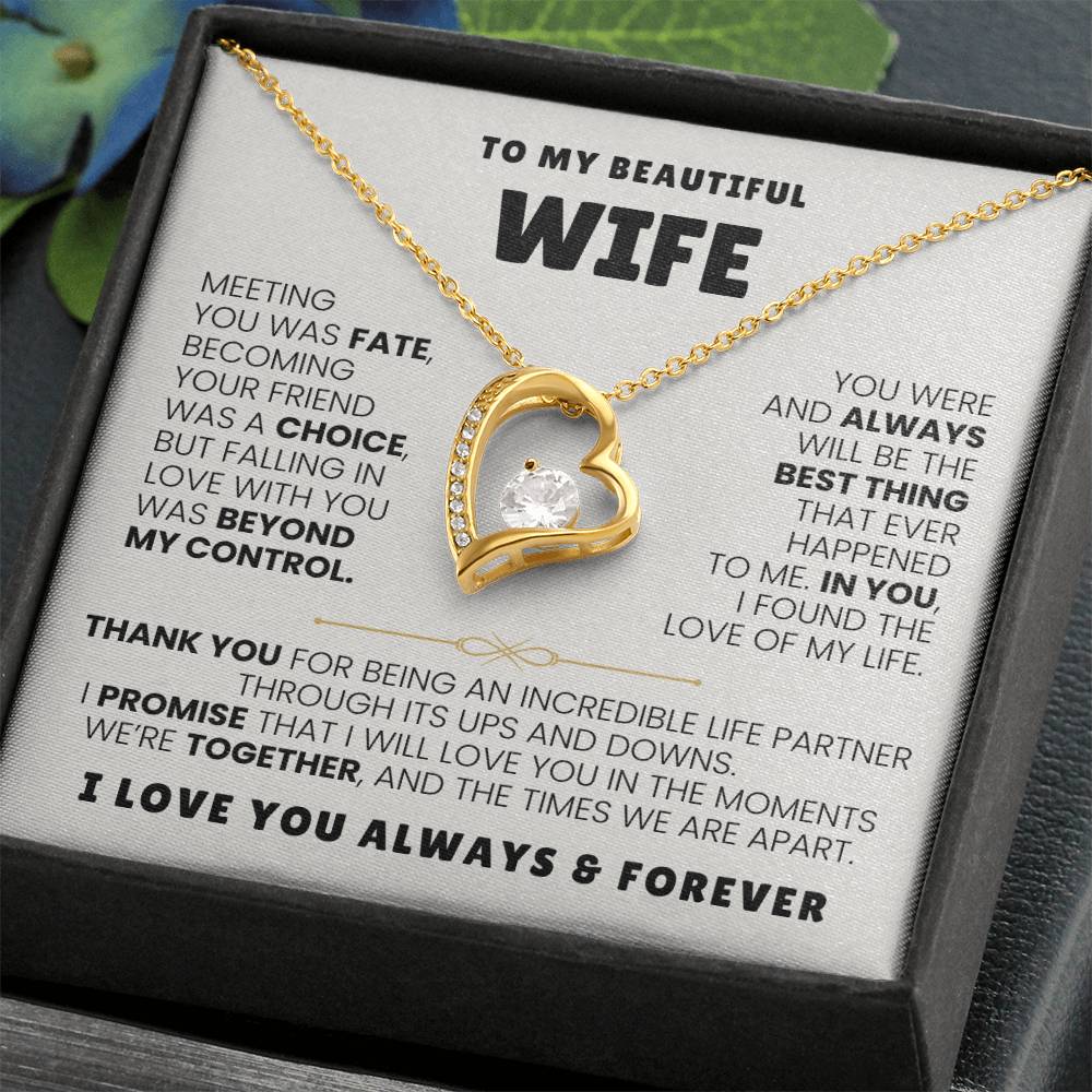 To My Beautiful Wife Necklace - Romantic Anniversary & Valentine’s Day Jewelry Gift from Husband to Wife - Forever Love Necklace
