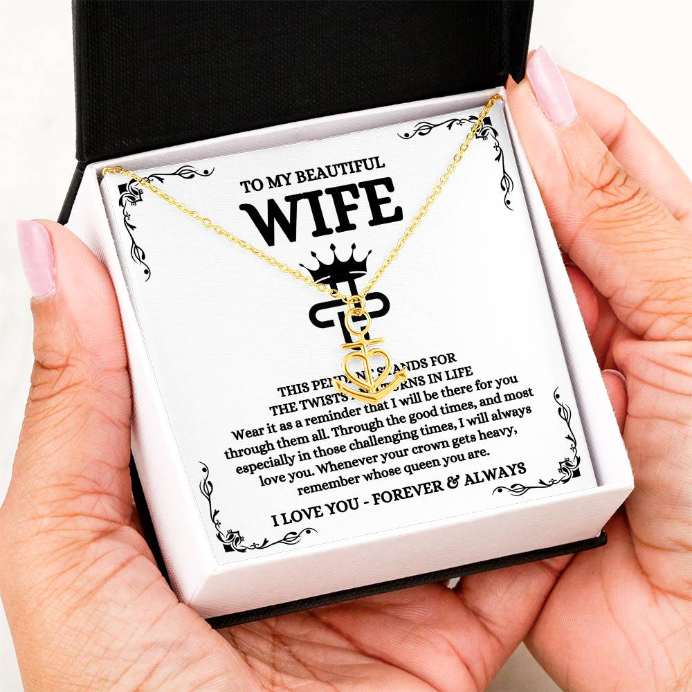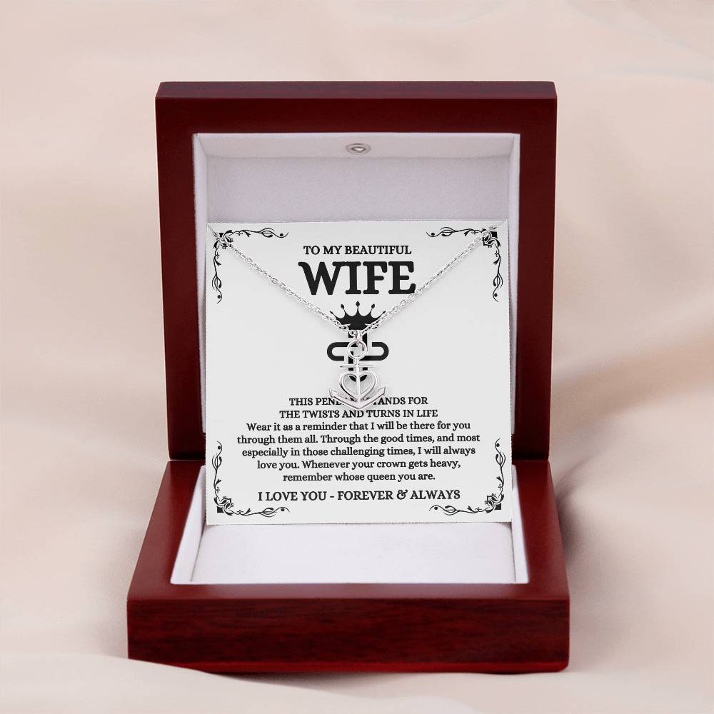 To My Beautiful Wife Necklace - Sentimental Birthday Gift from Husband, Romantic Jewelry for Valentine’s Day & Holidays - Anchor Pendant Necklace