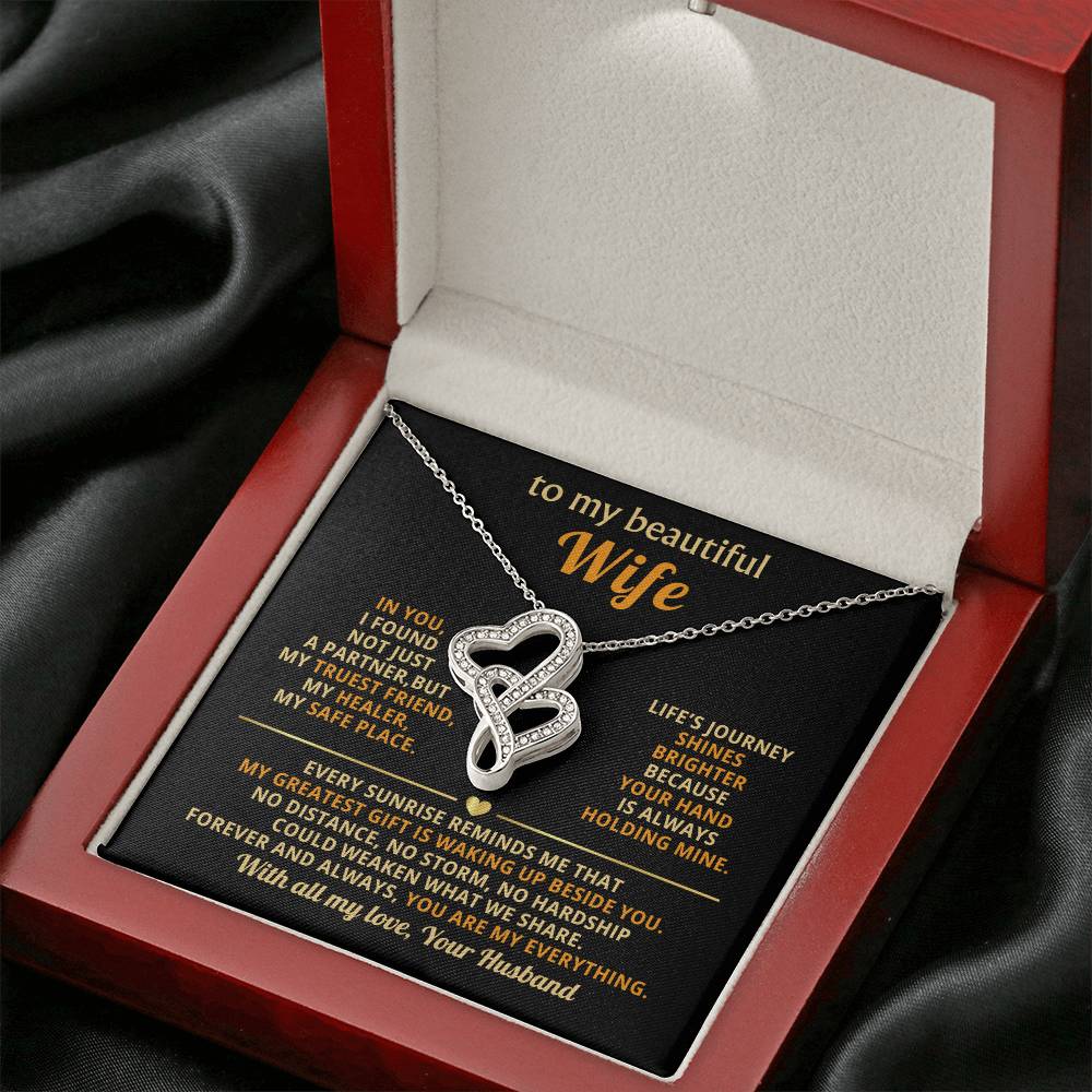 To My Beautiful Wife Necklace - Sentimental Birthday Gift from Husband, Romantic Jewelry for Valentine’s Day & Holidays - Heart-to-heart Pendant Necklace
