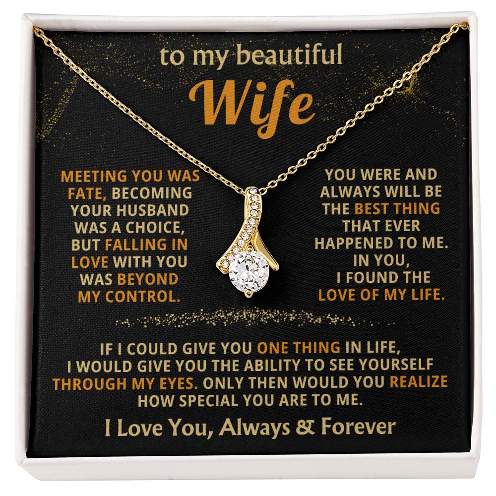 To My Beautiful Wife Necklace - Special Love Jewelry for Wife from Husband for Birthday, Anniversary & Valentine’s Day - Alluring Beauty Necklace
