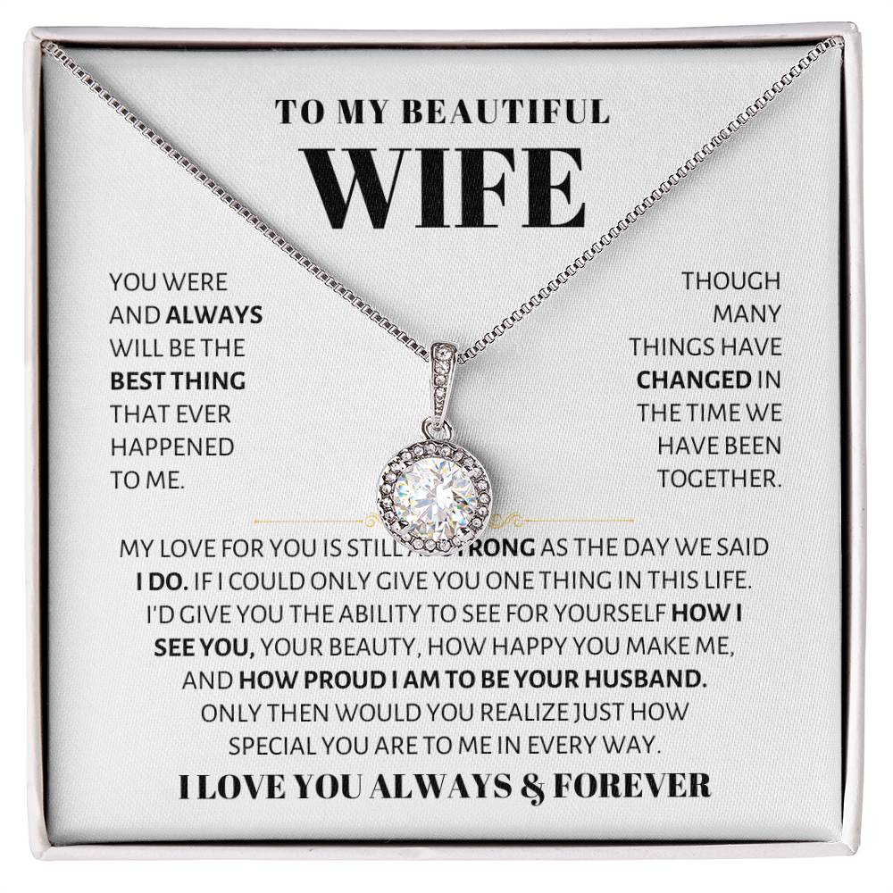 To My Beautiful Wife Necklace - Sweetest Gift for Wife from Husband for Valentine’s Day, Anniversary & Birthday Joy - Eternal Hope Necklace
