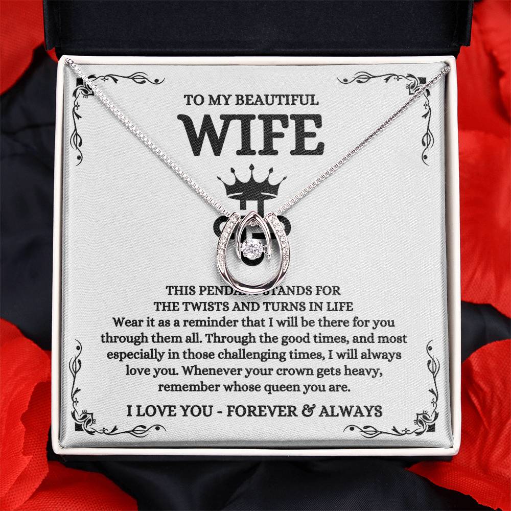 To My Beautiful Wife Necklace - Touching Romantic Gift for Wife from Husband for Christmas, Anniversary & Valentine’s Day - Lucky In Love Necklace