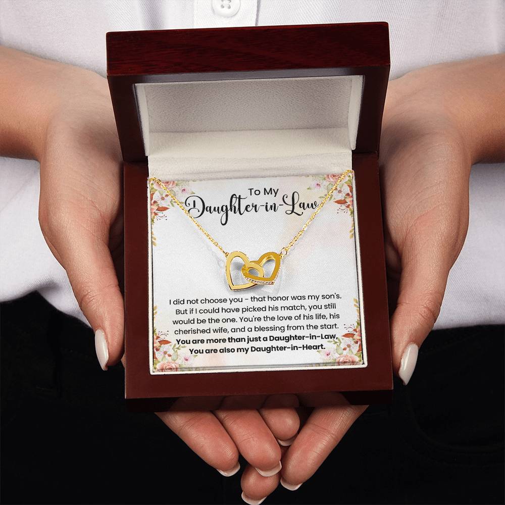 Let your daughter-in-law know just how much she means to your family with a timeless symbol of love and connection. This beautifully crafted interlocking hearts necklace is more than jewelry—it's a heartfelt message she can wear close every day.
