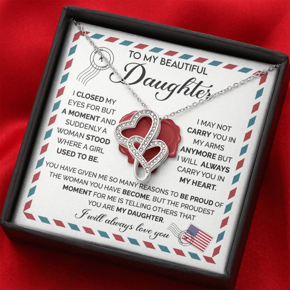 To My Daughter Necklace – Daughter Birthday Graduation Celebration Gift – Heart-to-heart Pendant Necklace