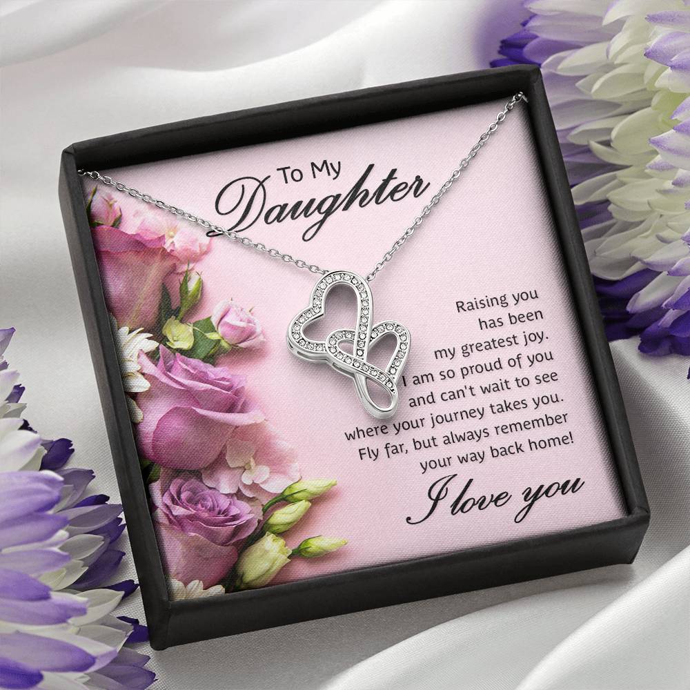 To My Daughter Necklace – Daughter Birthday & Graduation Jewelry Surprise – Heart-to-heart Pendant Necklace