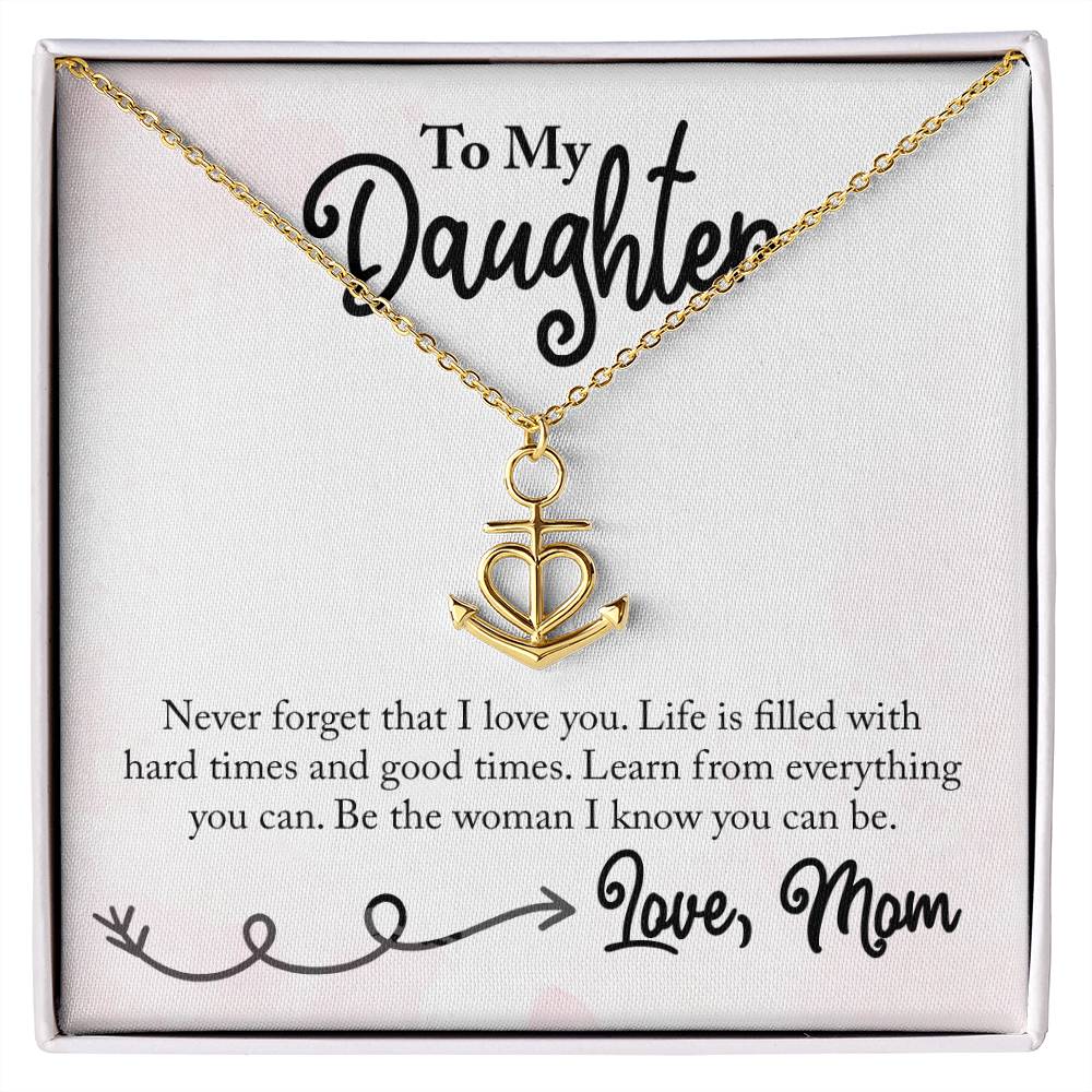 To My Daughter Necklace – Graduation & Christmas Gift from Mom – Anchor Pendant Necklace