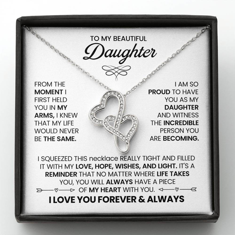 To My Daughter Necklace - Heartwarming Gift for Daughter’s Special Day - Heart-to-heart Pendant Necklace