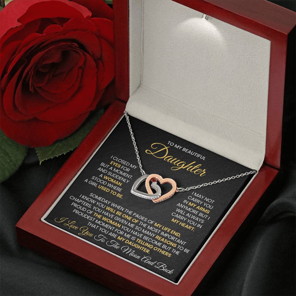 To My Daughter Necklace - I love you to the moon and back - Interlocking Hearts Necklace Gift for Daughter