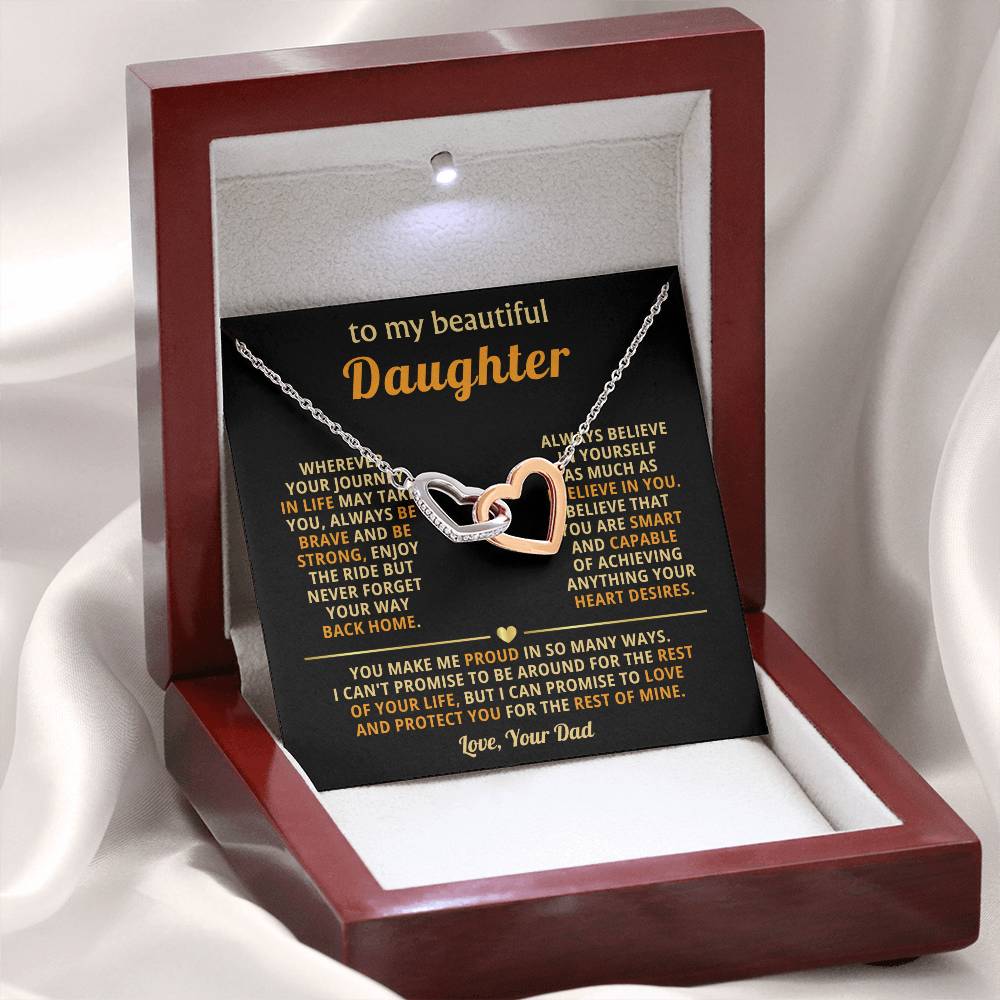 To My Daughter Necklace - You make me proud in so many ways - Daughter Present from Dad - Interlocking Hearts Necklace