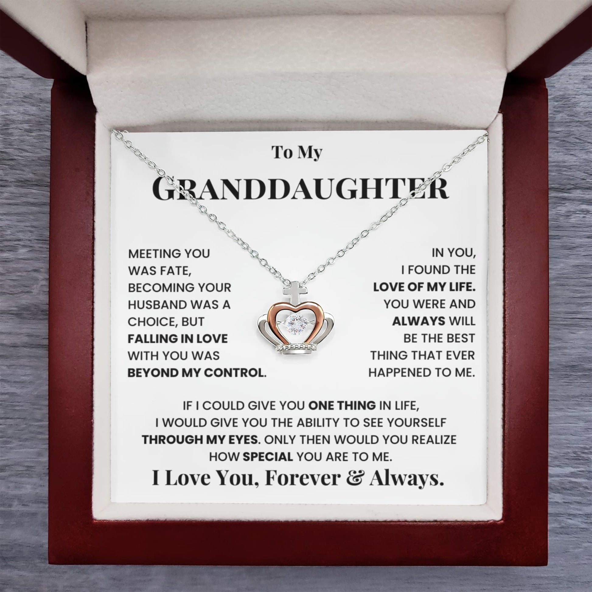 There are moments in life when words fall short—but a heartfelt gift speaks volumes. Whether it's a birthday, graduation, or just because, this crown pendant necklace is a timeless way to remind your granddaughter of her strength, beauty, and the love that surrounds her. Wrapped in elegance, it’s more than jewelry—it’s a lasting embrace she can wear every day.