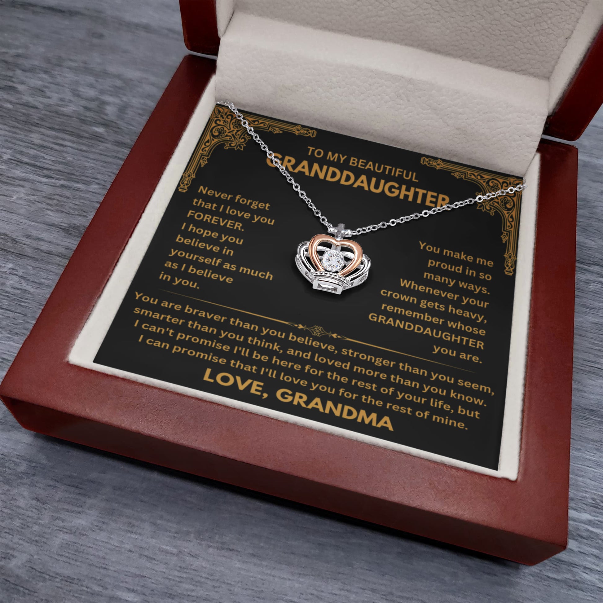Some bonds are woven tighter than time itself—and a heartfelt gift can say what words often can't. This elegant crown pendant necklace is more than just jewelry; it’s a symbol of love, guidance, and the unbreakable bond between a grandmother and her granddaughter.