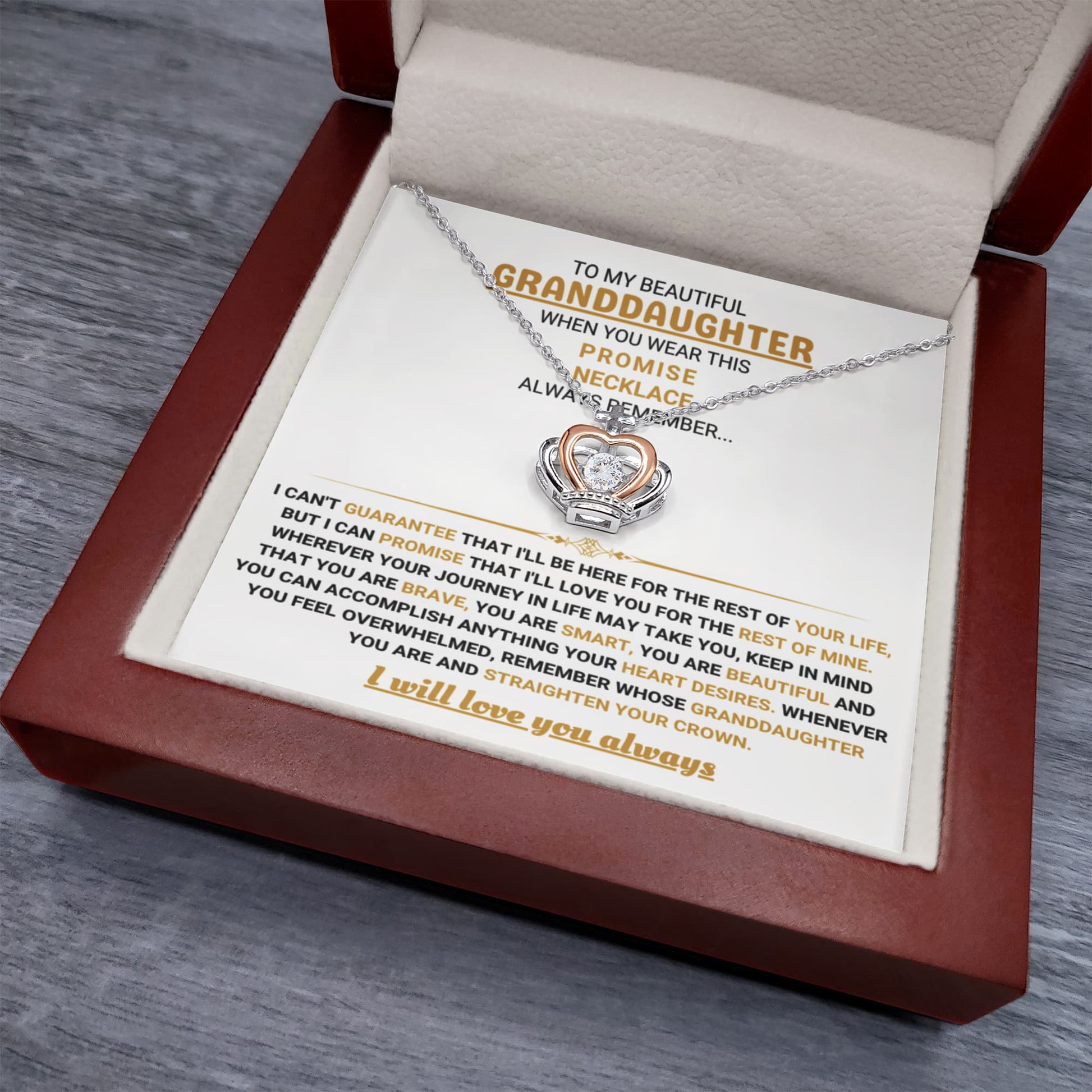To My Granddaughter Necklace – Granddaughter Jewelry for Birthday & School Achievements – Crown Pendant Necklace