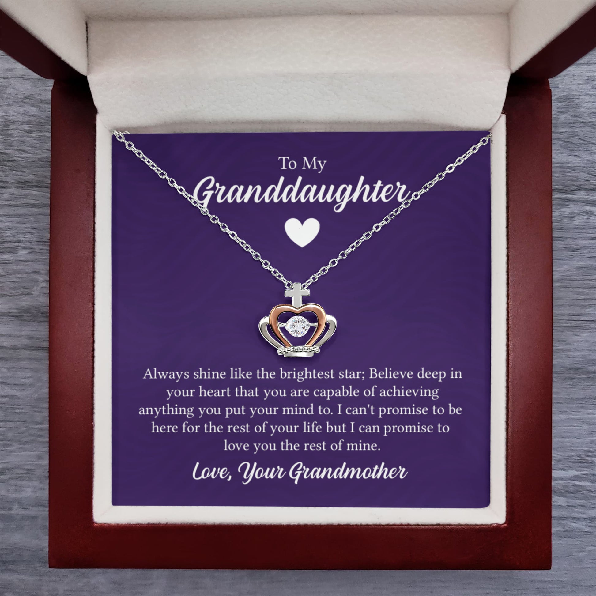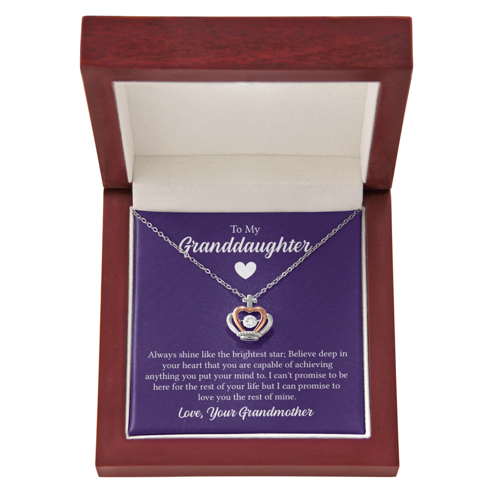 Wrap your granddaughter in the warmth of your love with a timeless reminder she’ll cherish forever. This elegant crown pendant necklace whispers the words you’d say if you were right beside her—reminding her she’s strong, loved, and destined for greatness. Crafted to celebrate her inner royalty, it becomes more than jewelry—it’s a symbol of your unbreakable bond. Whether near or far, each glance at this piece will reconnect her heart to yours, bringing comfort, strength, and confidence. Perfect for birthdays, graduations, or just because—this meaningful keepsake turns any moment into a treasured memory. Let her wear your love close. Order today and create a moment she’ll never forget.