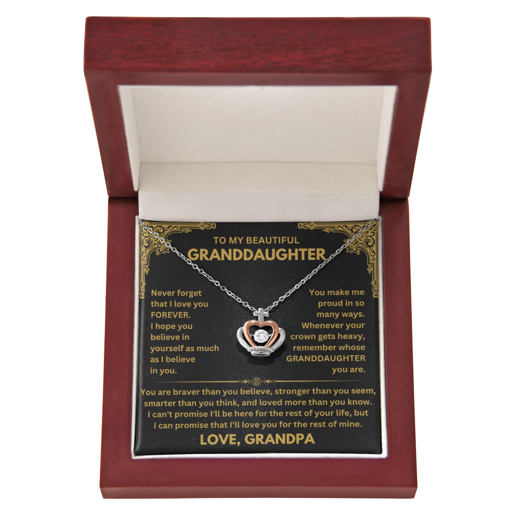 To My Granddaughter Necklace – Grandpa’s Gift for Granddaughter’s Birthday Graduation – Crown Pendant Necklace