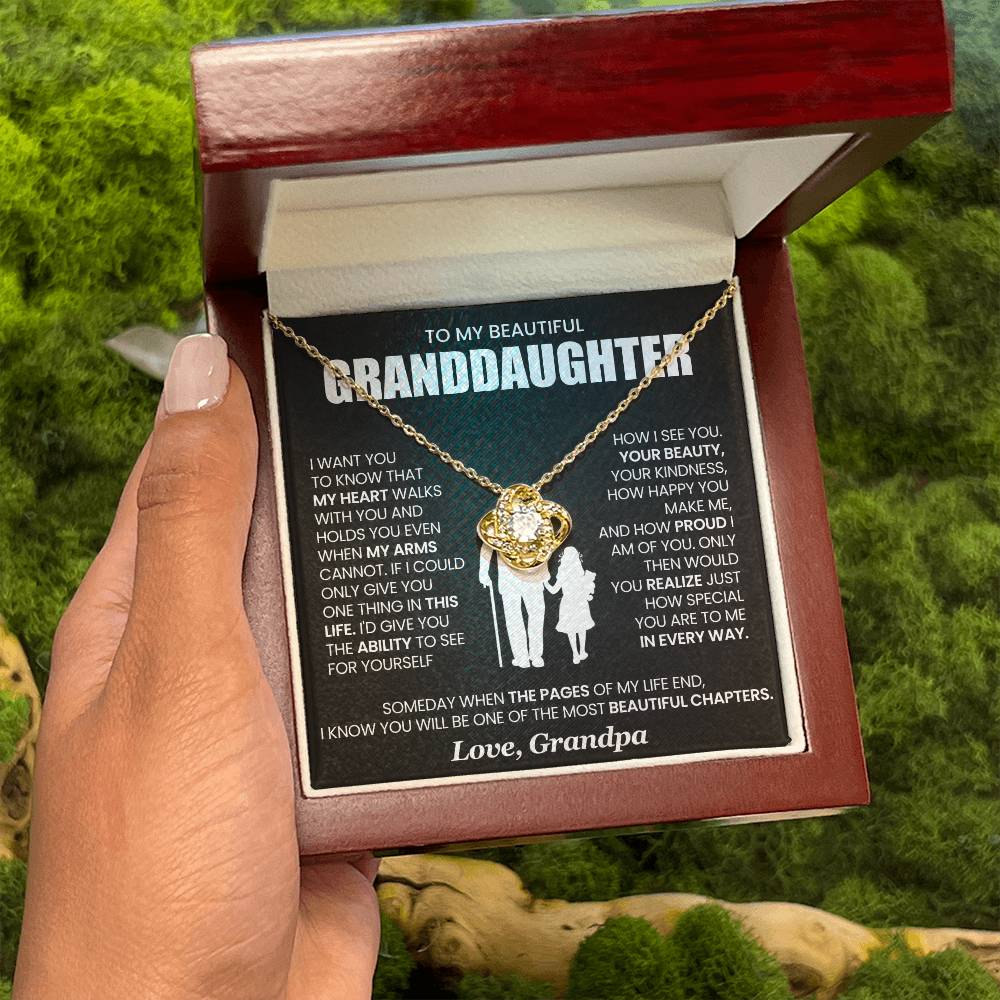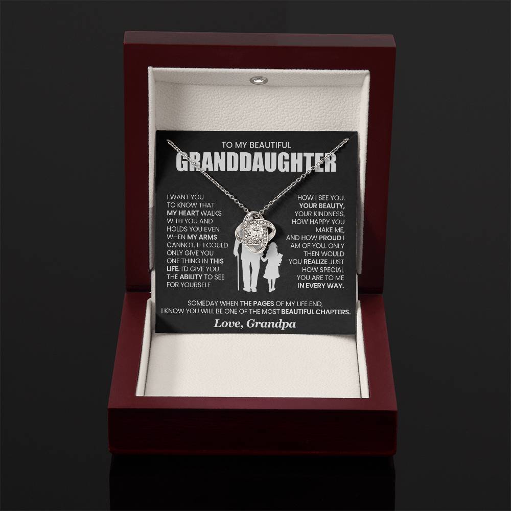 To My Granddaughter Necklace – Present for Granddaughter Birthday, Christmas from Grandpa – Love Knot Necklace
