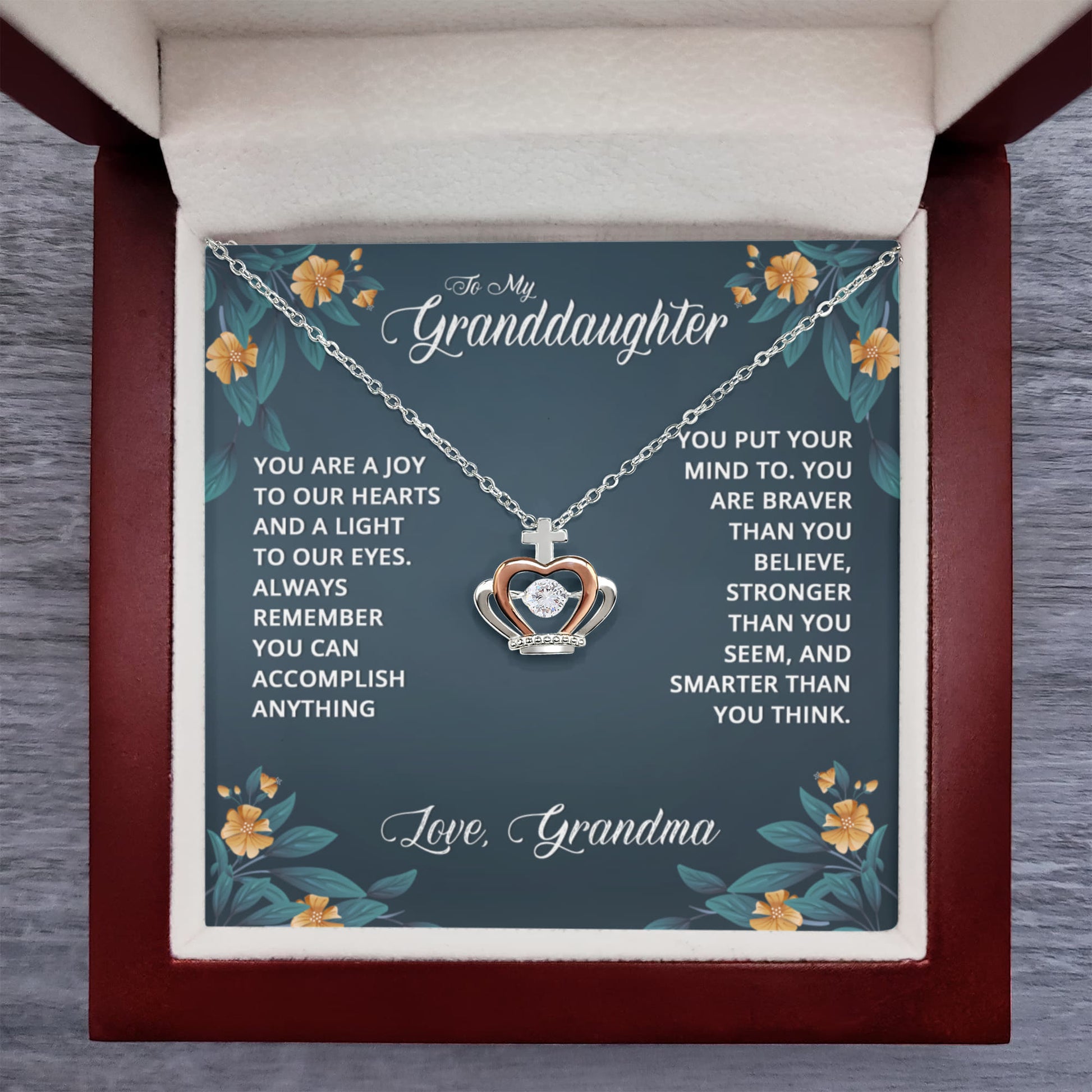 To My Granddaughter Necklace – Valentine Birthday Gift for Granddaughter from Grandma – Crown Pendant Necklace