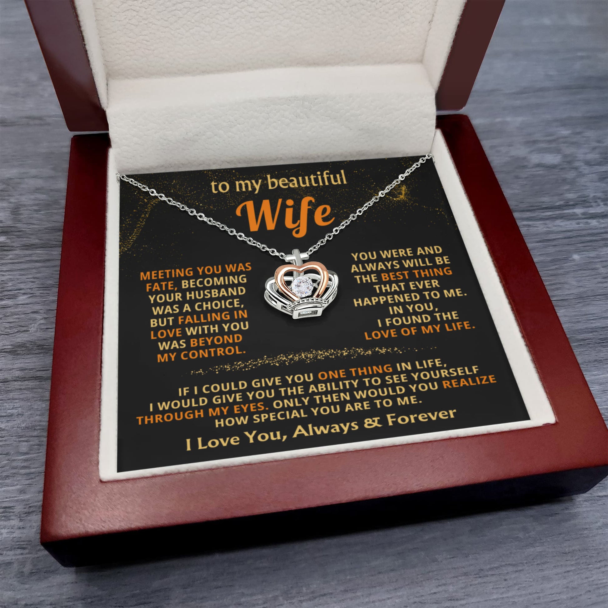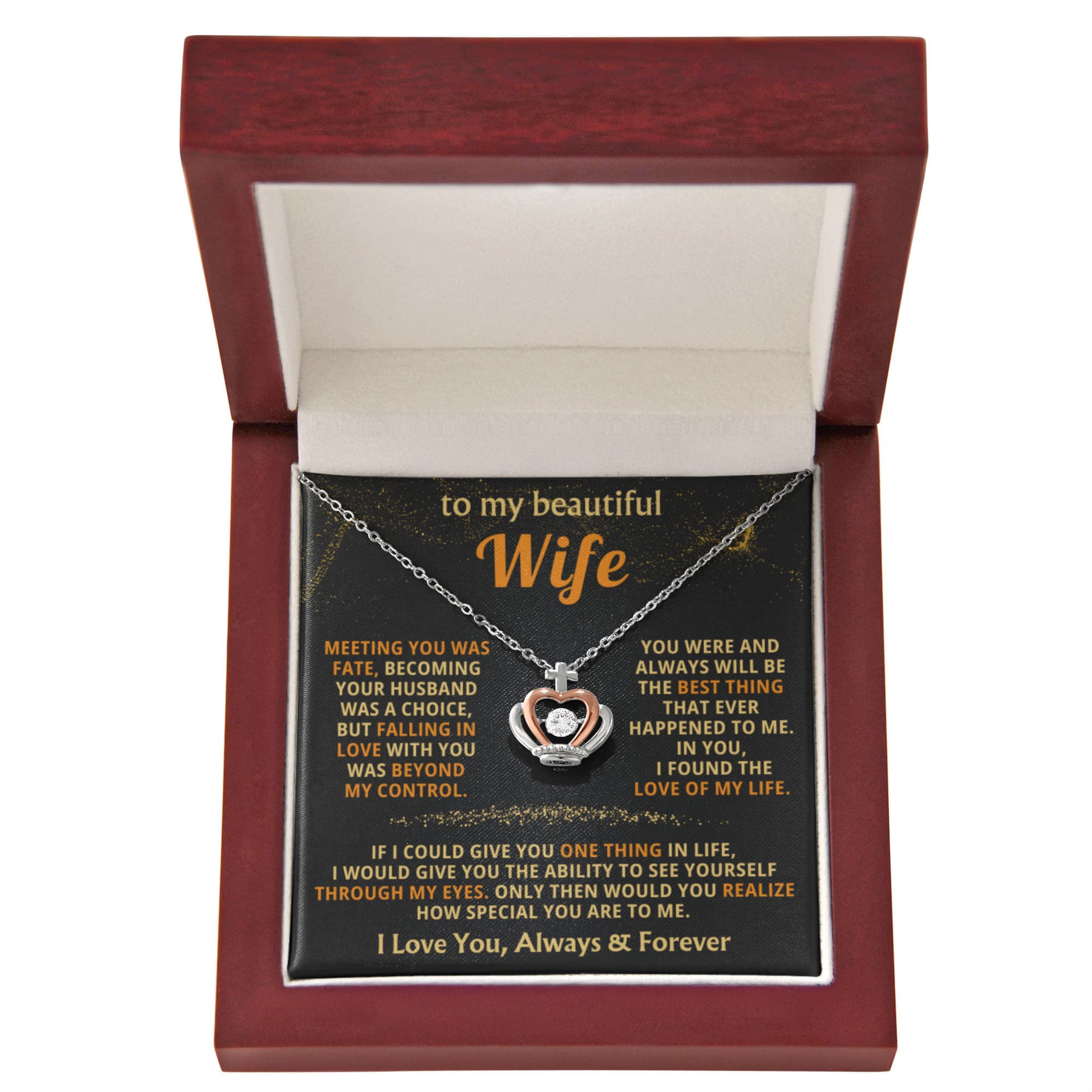 To My Wife Necklace - Beautiful Wife Gift from Husband for Birthday, Anniversary & Valentine’s Day - Crown Pendant Necklace