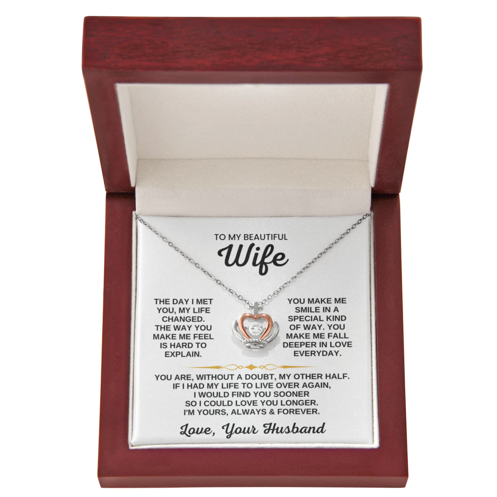 To My Wife Necklace from Husband - Emotional Jewelry Gift for Anniversary, Birthday & Valentine’s Day - Crown Pendant Necklace