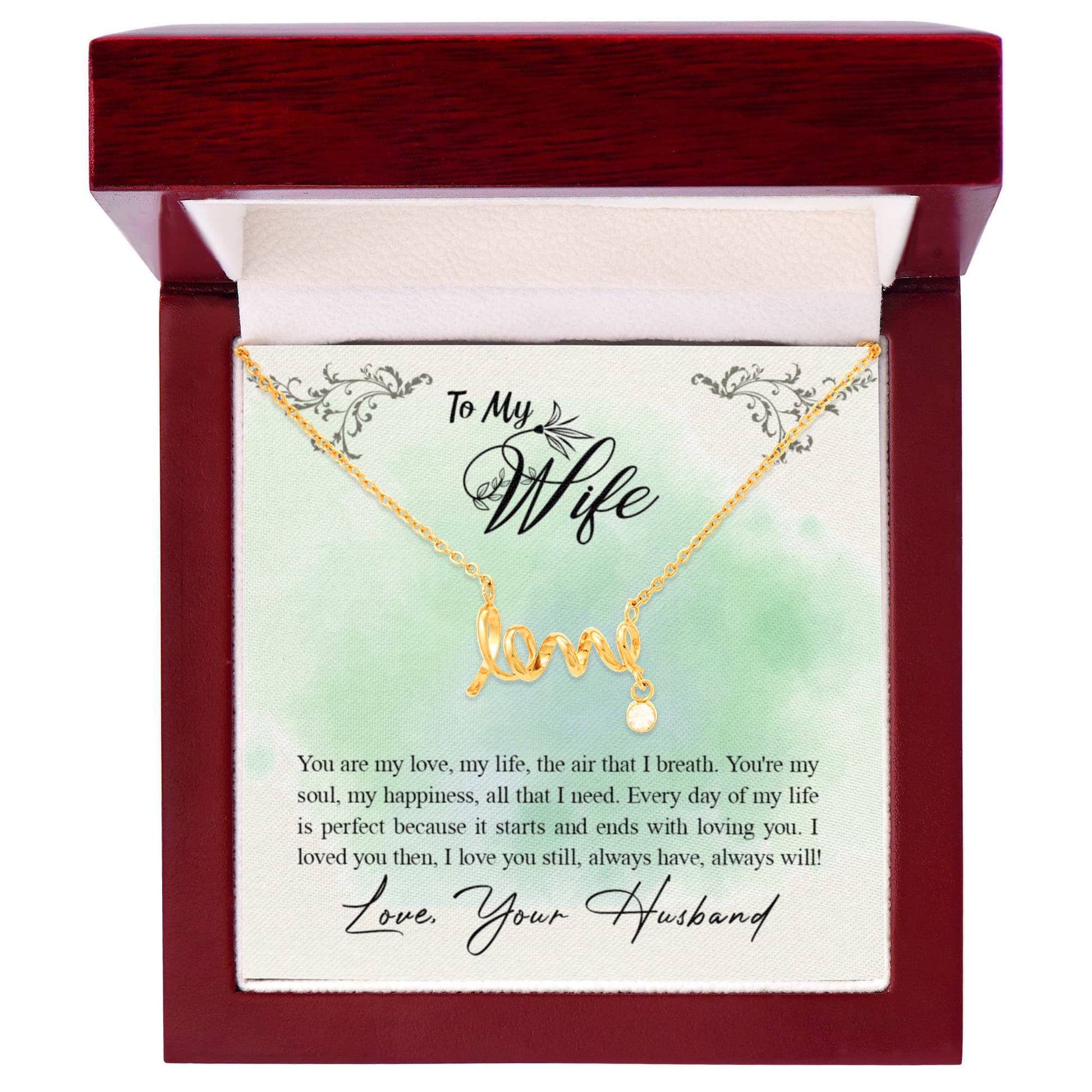 Holiday Gift for Wife - Romantic Jewelry from Husband for Christmas & Valentine’s Day - Scripted Love Necklace